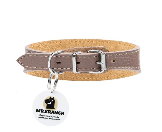 Ошейник-селедка Mr.Kranch для собак из натуральной кожи с QR-адресником, 24-30см, бежевый, 173785