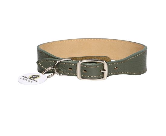 Ошейник-селедка Mr.Kranch для собак из натуральной кожи с QR-адресником, 33-40см, оливковый, 174676