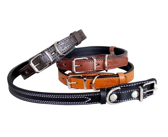 ЗООНИК Ошейник кожаный двойной, серия " премиум-классик" 20 мм, 28-37 см, черный, 10122