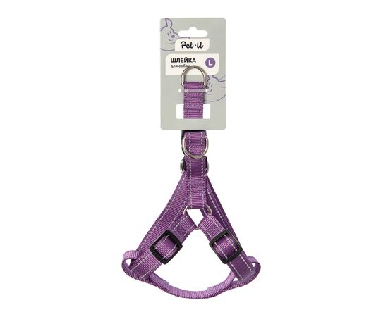 Pet-it шлейка для собак, серия БАЗИС, светоотражающая нить, размер L (2.5х50-70 см), фиолетовая