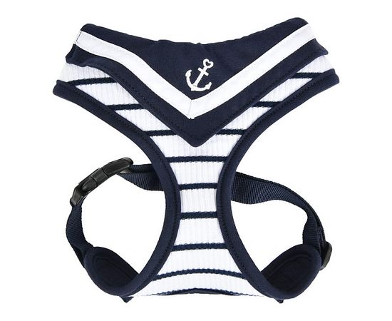 PINKAHOLIC Шлейка для собак "Cordelia", белая в синюю полоску/синий кант, S (Южная Корея)