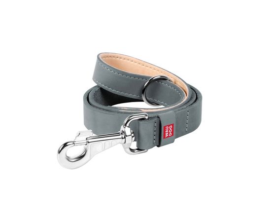 WAUDOG Classic Поводок кожа, стандартный карабин, ширина 20 мм, длина 122 см, Серый, 081411