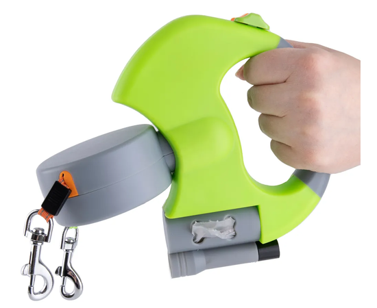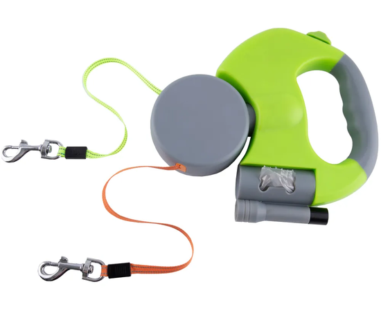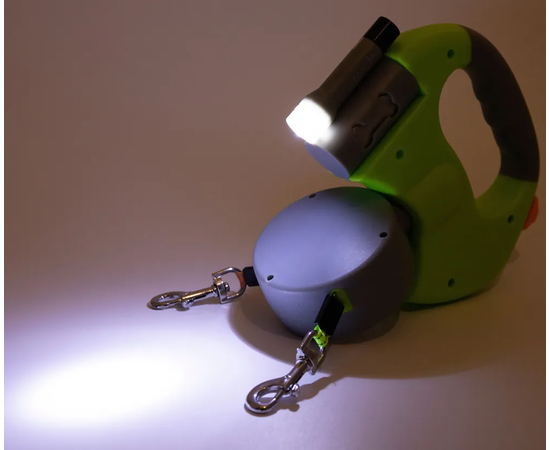 Поводок-рулетка NUNBELL для собак на два поводка длина=3м на вес до 8кг с контейнером для пакетов и фонариком