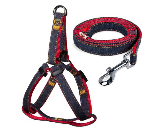 Комплект шлейка и поводок, джинсовый, красный, 15*350-450мм, 15*1200мм, Triol