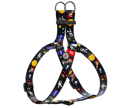 Шлея для собак быстросъемная WAUDOG Nylon c QR паспортом, рисунок "NASA", пластиковый фастекс, Ш 20