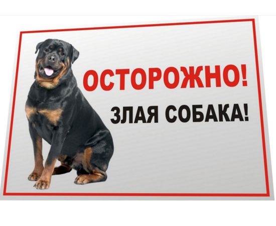 Табличка "ОСТОРОЖНО, ЗЛАЯ СОБАКА" ротвейлер 216*154 ТаблИнф-45, ТаблИнф-45