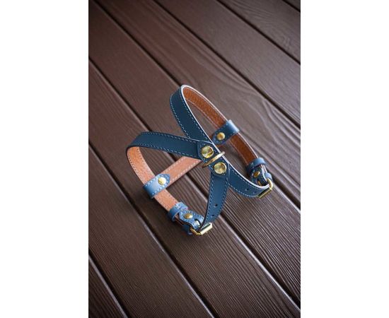 Такая кожаная шлейка предназначена для собак мелких пород.