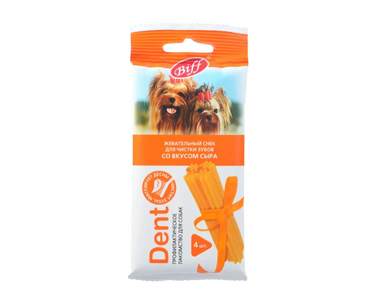 Biff Dent снек для чистки зубов (4 шт в упаковке) со вкусом сыра для собак мелких пород 40гр