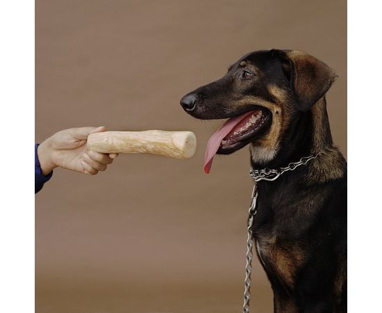 Важно выбрать правильный размер игрушки, исходя из темперамента собаки, особенностей породы, строения челюстей и способности грызть. Поскольку палочка деревянная, и обладает всеми свойствами присущими дереву, то при значительном силовом воздействии она может расколоться на мелкие кусочки. Слишком маленькую палку собака легко и быстро сможет раскрошить, а большую будет некомфортно и неудобно грызть. Поэтому мы рекомендуем тщательно подбирать размер, ориентируясь не только на вес собаки, но и на её индивидуальные особенности. Также очень важно давать палочку строго под присмотром хозяина и забирать её, если собака начинает её раскалывать.