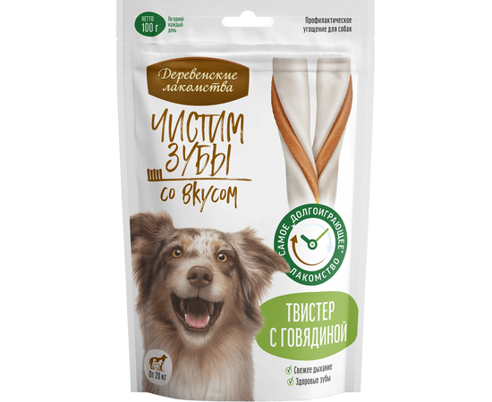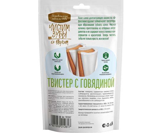 Деревенские лакомства Чистим зубы Твистер с говядиной для собак 100г