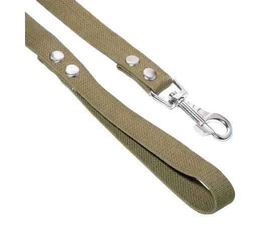 Практичный и надежный поводок из брезента длиной 3 метра при ширине 2,5 см. Поводок применяется для прогулок и дрессировки собаки. Он отличается высокой прочностью и долговечностью. Изделие снабжено надежным карабином из высококачественной стали, а специальный переходник позволяет карабину крутиться вокруг своей оси, предотвращая запутывание. На поводке имеется петля, которая одевается на руку для более удобного использования. Цвет: хаки