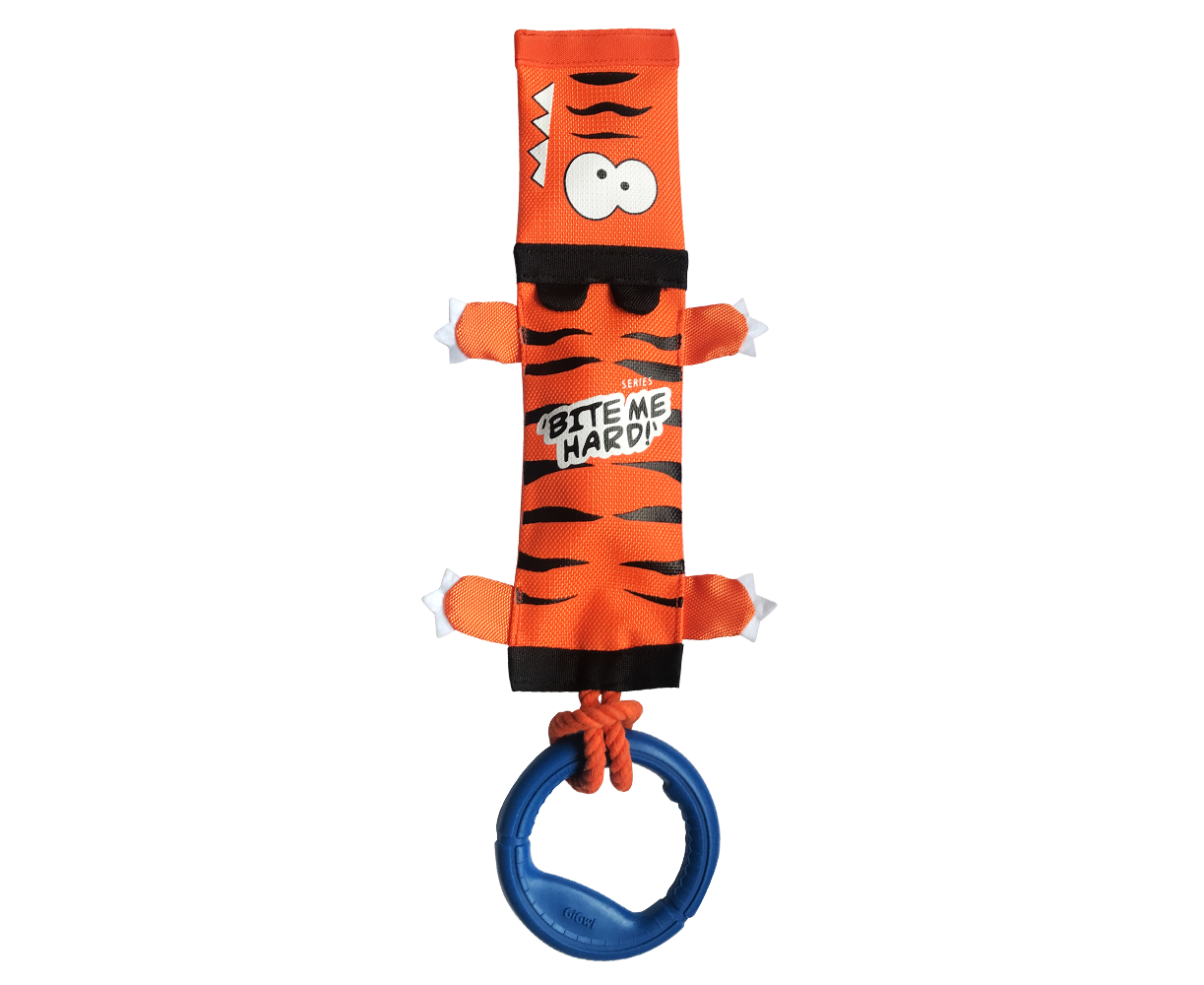 GiGwi Игрушка для собак Тигр на верёвке с ручкой и пищалками 55см, серия BITE ME HARD, 75526