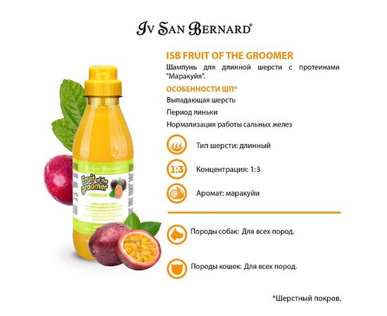 Шампунь ISB Fruit of the Grommer Maracuja для длинной шерсти с протеинами, 500 мл.
