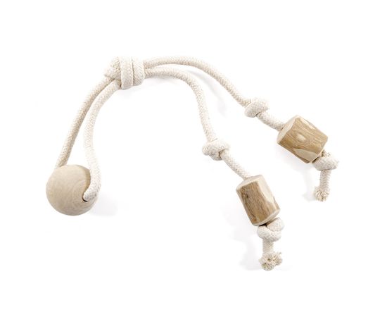 Собаки – верные друзья человека, и им важно обеспечить разнообразное времяпрепровождение и удовольствие от игр. Веревочная игрушка от бренда Coffee Wood не просто игрушка, а прекрасный инструмент для развития собачьего интеллекта и повышения ее физической активности. Эта классическая канатная игрушка грейфер дополнена уникальной деталью - небольшими бочонками и шариком из кофейного дерева. Сочетание прочной веревки и интригующих деревянных элементов создает уникальный аксессуар, который принесет огромную радость собаке как во время прогулок на свежем воздухе, так и в домашней обстановке.