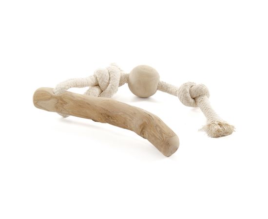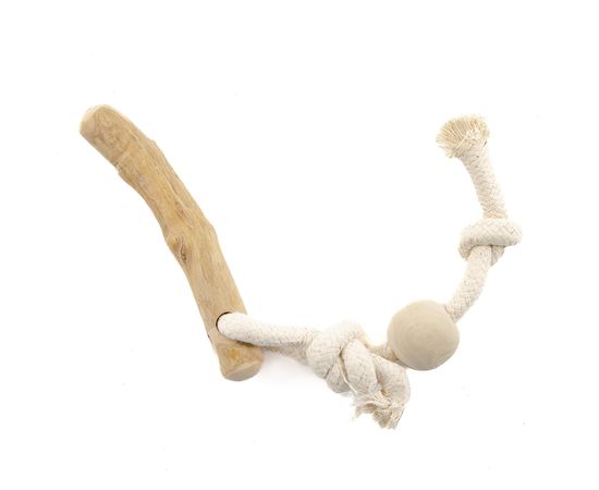 В этом варианте игрушки шар из кофейного дерева и кофейная палка нанизаны на прочную натуральную веревку из хлопка и закреплены узлами на её концах. Такая модель особенно придется по душе взрослым собакам маленьких пород и некоторым щенкам и подросткам средних пород, которые любят не только погрызть, но и пожевать и потрепать свою «жертву». Пригодится игрушка для прогулки на свежем воздухе и игры в перетягивание. Вы можете тянуть, бросать, отнимать игрушку, а ваш четвероногий друг с радостью и энтузиазмом поддержит такое развлечение. Канатик из хлопка безопасен для собаки и также помогает бережно и аккуратно очистить зубной налет прямо во время игры.