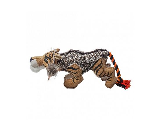 DUVO+ Игрушка для собак брезентовая "Тигр с оранжевым хвостом", коричнево-чёрная, 46х15х18см, 11763/,11763/DV