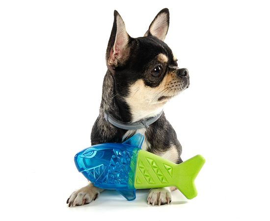 EliteDog Игрушка для собак резиновая Рыбка охлаждающая, сине-зеленая, 18х9х4см