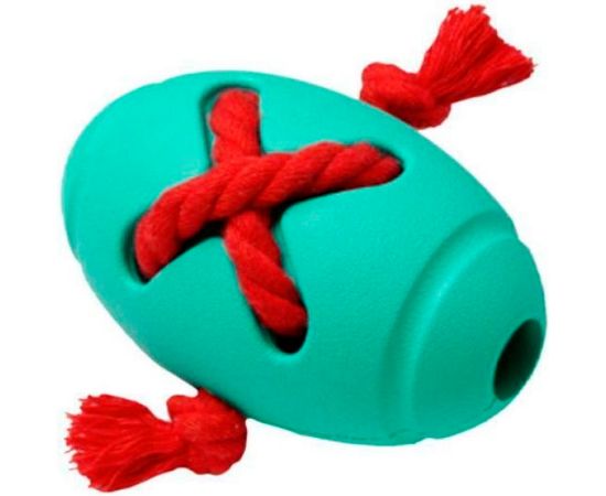 HOMEPET SILVER SERIES Ф 8 см х 12,7 см игрушка для собак мяч регби с канатом бирюзовый каучук, 78995