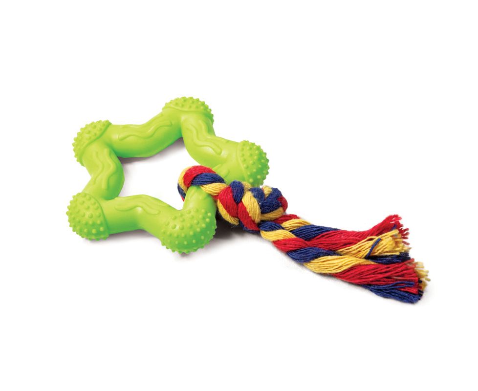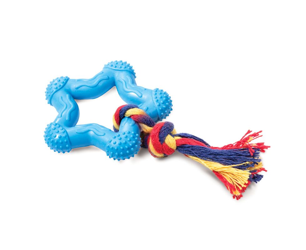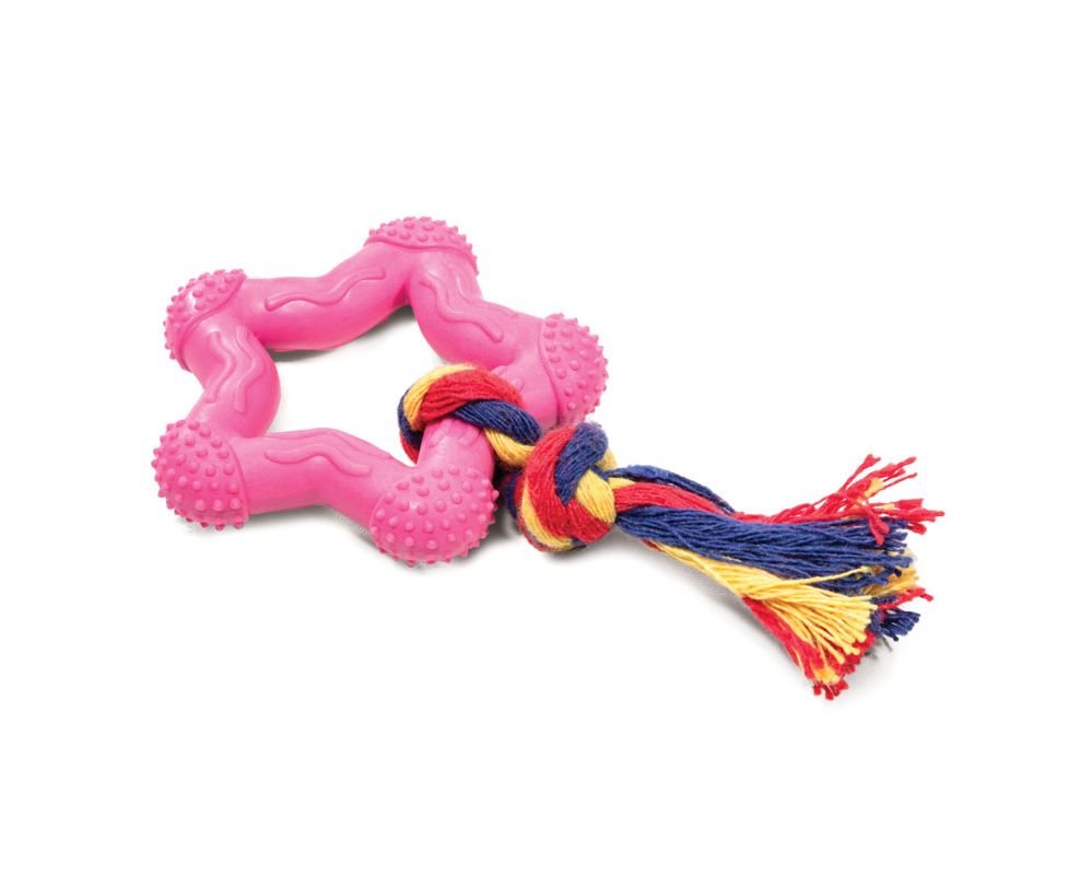 Игрушка для собак из цельнолитой резины с веревкой "Звездочка", d75/150мм