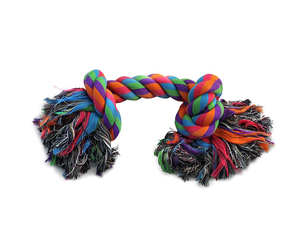 Собаки обожают играть с веревочными игрушками, так как их можно грызть, трепать и носить в зубах. Такие игрушки отлично массируют десны и очищают зубной налет во время игры. Веревки сплетены из нитей натурального хлопка, поэтому безопасны для здоровья Вашего питомца. Цвет: разноцветный. Вес: 55-65г. Длина веревки: 180мм.