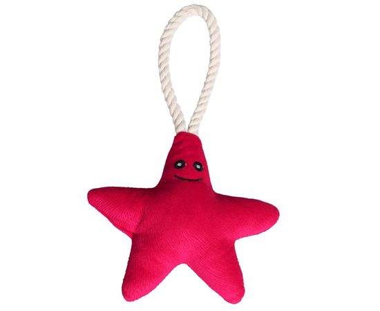 Игрушка Mr.Kranch для собак мелких и средних пород Звездочка с канатом и пищалкой 26х16х5см, ярко-ро,80258