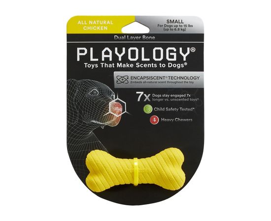 Playology двухслойная жевательная косточка DUAL LAYER BONE с ароматом курицы, маленькая, желтый , P3,P300739