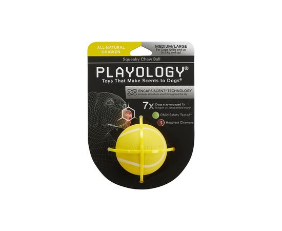 Playology хрустящий жевательный мяч SQUEAKY CHEW BALL 6 см. с пищалкой, с ароматом курицы, желтый , ,P300709
