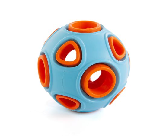 Skyrus Игрушка д/собак резиновая "Мяч для лакомств", оранжево-голубая, 4,8см