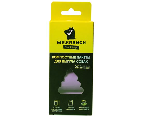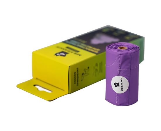 Компостные пакеты Mr.Kranch для выгула собак 4 рулона по 15 пакетов (22x33 см), фиолетовые