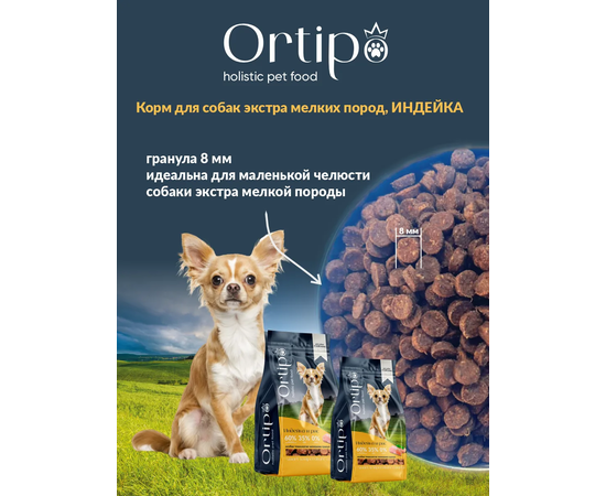 Корм Ortipo для взрослых собак X Small пород (индейка) 0,5 кг