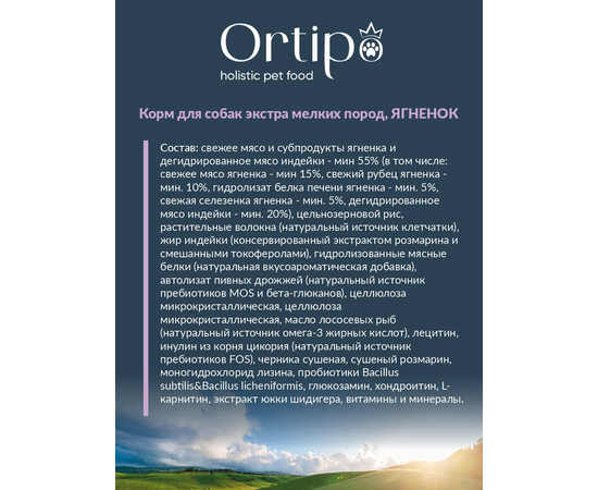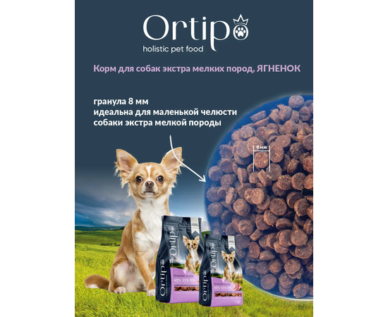 Корм Ortipo для взрослых собак X Small пород (ягненок) 0,5 кг