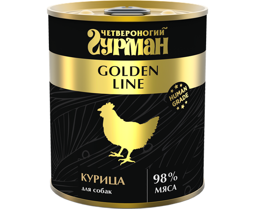 Четвероногий гурман “Golden line” для собак – это влажный корм суперпремиум класса, приготовленный из одного вида мяса качества Human grade (пригодного в пищу человеку) без добавления субпродуктов, зерновых и сои. Корм полностью натуральный – в его составе нет искусственных красителей, ароматизаторов, усилителей вкуса и ГМО.