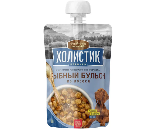 Корм Деревенские Лакомства для собак, Рыбный бульон из лосося, 160г