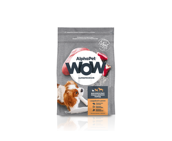 AlphaPet WOW для собак мелких пород с индейкой и рисом сухой 500 гр