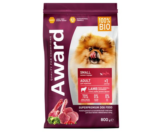 Сухой корм AWARD для взрослых собак мелких и миниатюрных пород, с ягненком и брусникой, 800г