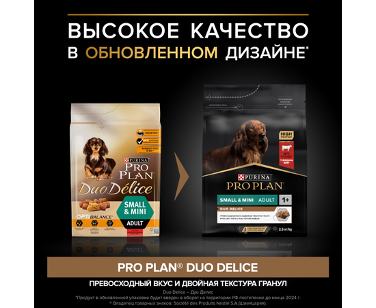 заботясь о здоровье и благополучии собак, мы разработали новинку — корм PRO PLAN Duo Delice для маленьких собак. Этот корм обеспечит полноценное и сбалансированное питание, здоровье и хорошее самочувствие Вашему маленькому питомцу. Новинка Duo Delice для собак мелких и карликовых пород также способствует сохранению здоровья зубов и улучшению работы пищеварительной системы. Мы убеждены, что Ваш питомец должен быть не только здоровым, но и счастливым. Поэтому новый корм PRO PLAN Duo Delice для маленьких собак благодаря уникальной двойной текстуре сочетает в себе два вида кусочков: хрустящие крокеты и мягкие кусочки, которые так любят собаки. Ваш маленький питомец оценит великолепный вкус, а Вы будете знать, что обеспечиваете ему исключительно качественное питание. Отныне никаких компромиссов в кормлении вашего питомца! Два вида кусочков, в два раза больше удовольствия! Обеспечивает правильный баланс питательных веществ для поддержания здоровья и хорошего самочувствия взрослых маленьких собак.