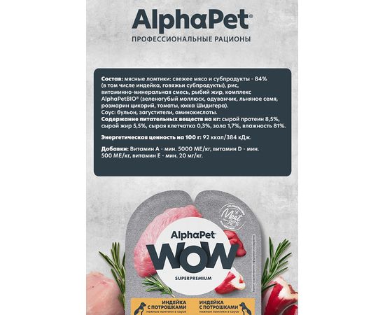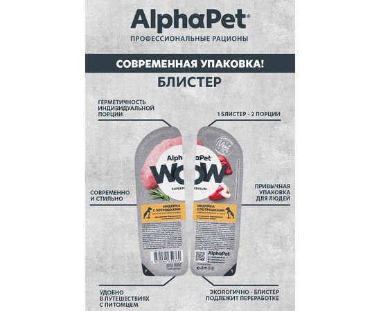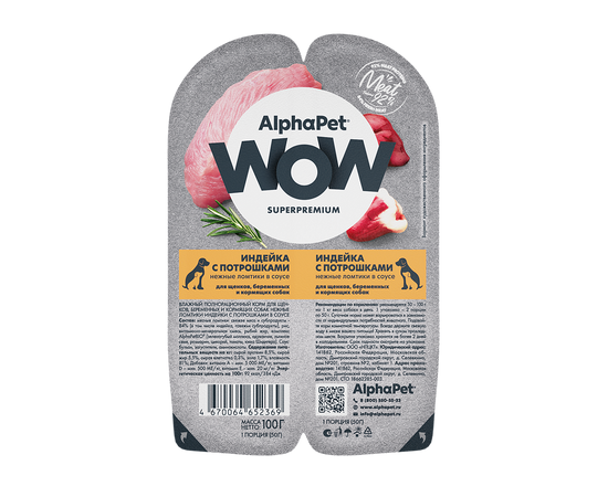 AlphaPet WOW для кормящих,беремен.собак и щенков индейка и потрошки ломтики в соусе, 100г,652369