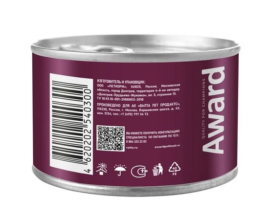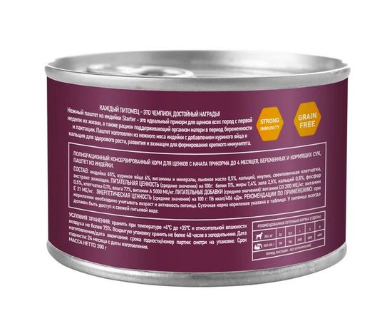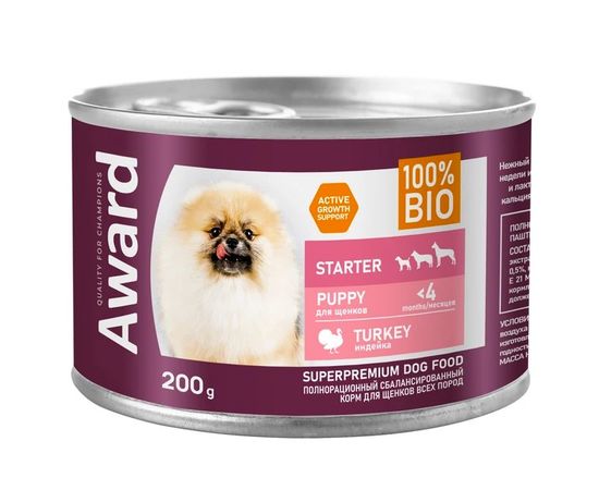 Корм AWARD для щенков с начала прикорма и кормящих сук, паштет из индейки, 200г