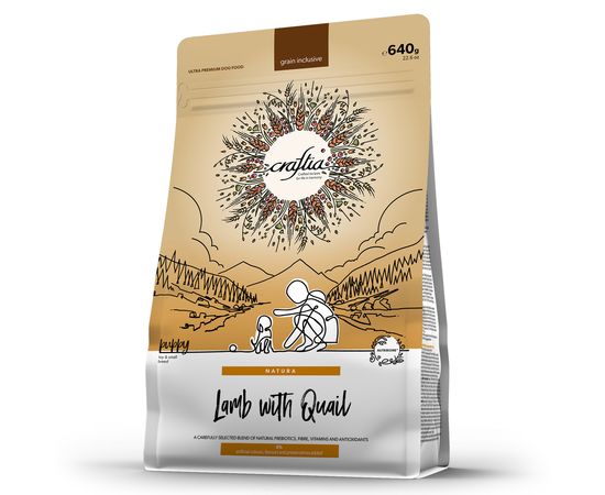CRAFTIA NATURA сухой корм для щенков миниатюрных и мелких пород из ягненка с перепелкой.