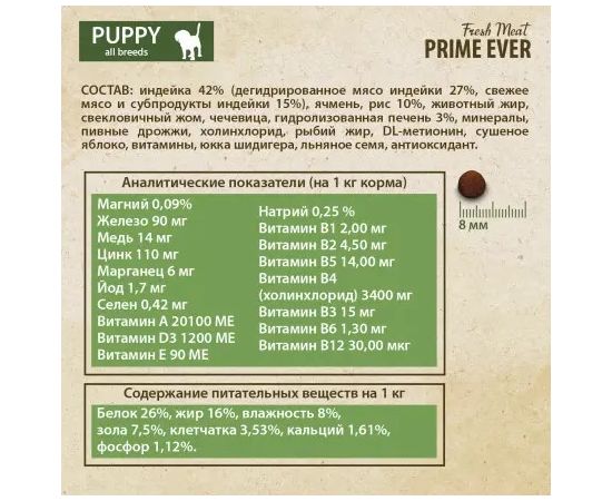 Prime Ever Fresh Puppy сухой корм д/щенков с 1 месяца Индейка с рисом 2,8кг, ЦБ-00056934