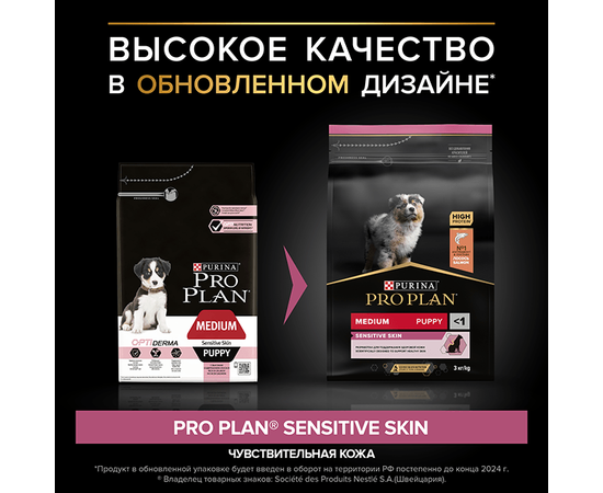Некоторые щенки имеют склонность к расчесыванию и расцарапыванию своей кожи, и у них может чаще наблюдаться перхоть. Разработанный нашими ветеринарами и диетологами корм Purina® PRO PLAN® с комплексом OPTIDERMA® обеспечивает улучшенное питание, которое поддерживает чувствительную кожу щенков. Подтверждено, что комплекс OPTIDERMA® включает в себя специальную комбинацию питательных веществ, которые поддерживают здоровье кожи и красивую шерсть, а отобранные источники белка помогают сократить возможные кожные реакции, связанные с пищевой чувствительностью.