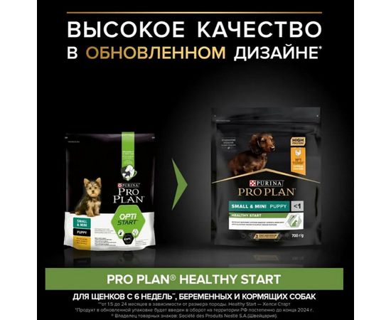 PRO PLAN PUPPY SMALL&MINI OPTISTART сухой корм для щенков мелких пород с курицей 700 г,1140204563