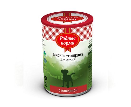 РОДНЫЕ КОРМА Мясное угощение с Говядиной для щенков, Корм консервированный 340гр, 64587