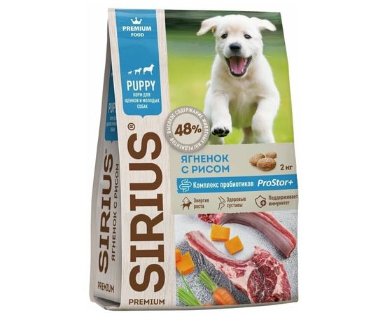 Сухой корм SIRIUS для щенков и молодых собак, ягненок и рис, 2 кг
