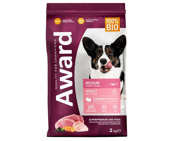 Сухой корм AWARD для взрослых собак средних пород, с индейкой и черной смородиной, 2кг