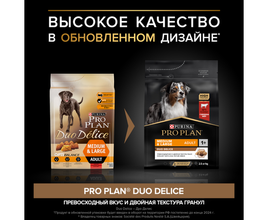 PRO PLAN DUO DELICE сухой корм для собак средних и крупных пород с говядиной и рисом 2,5 кг, 1140193,1140193834