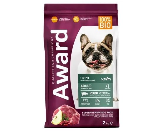 Сухой корм AWARD Hypo для взрослых собак всех пород, со свининой с добавлением брусники груши и розмарина, 2кг