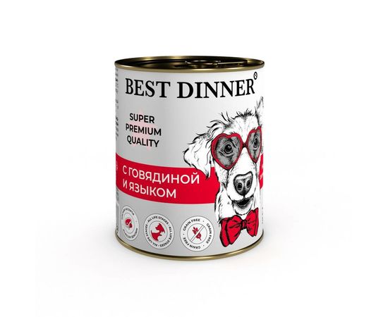 Консервы Best Dinner Dog Super Premium для собак, с говядиной и языком, 0,34 кг