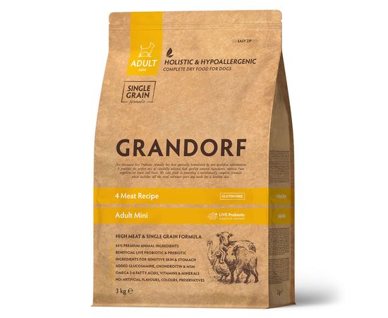 Корм GRANDORF для взрослых собак мини пород, четыре вида мяса, 3 кг