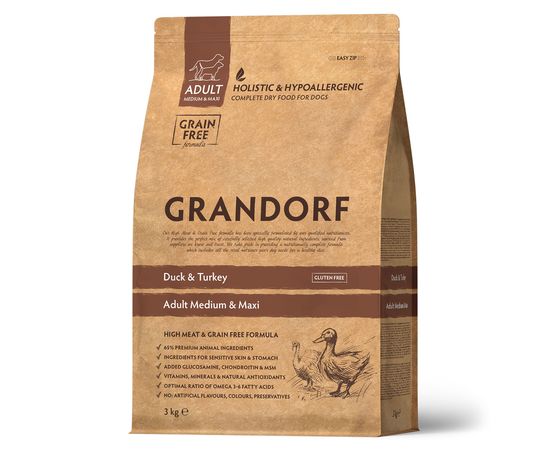 GRANDORF утка с индейкой для собак средних и крупных пород 3 кг,1041/2033
